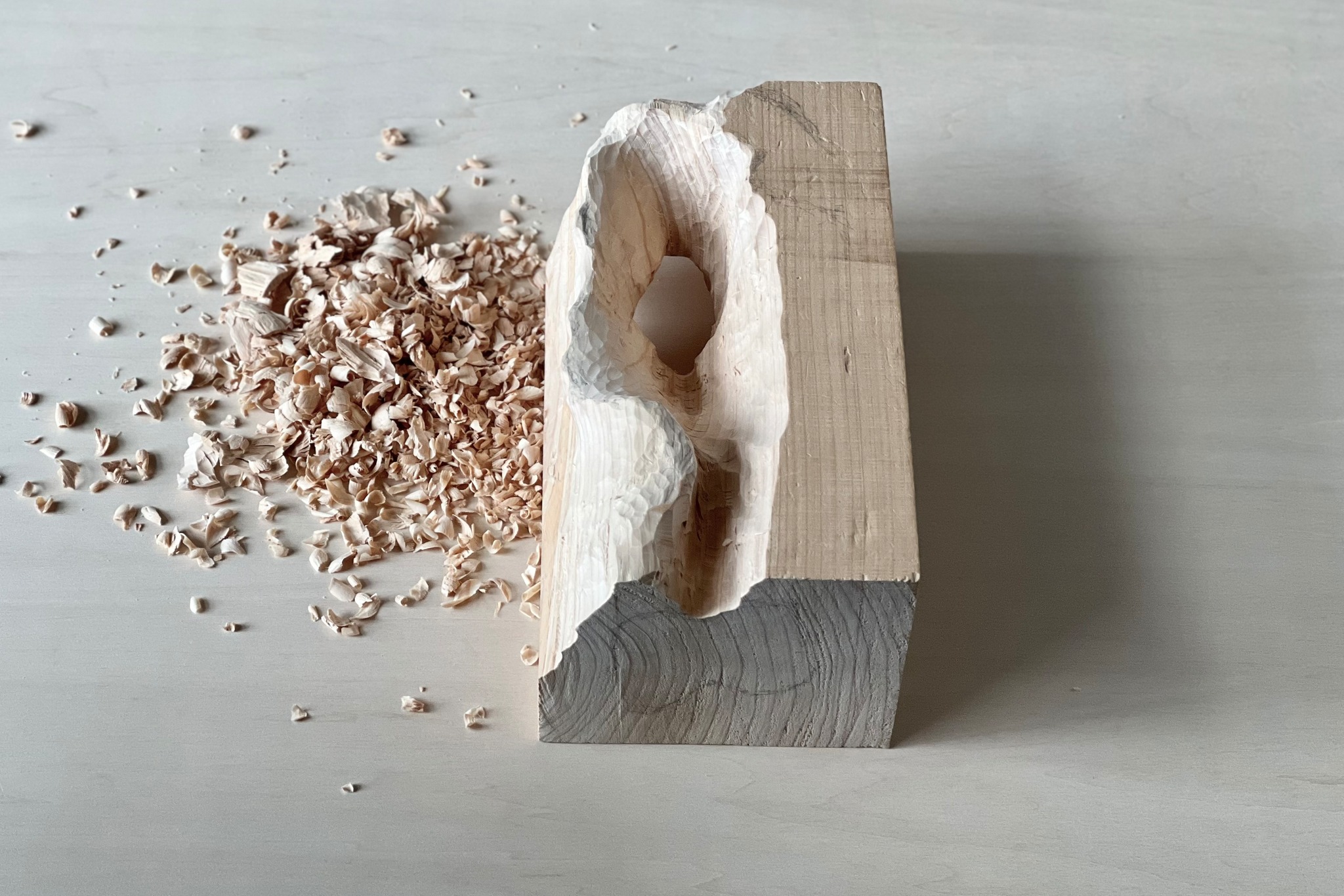 Each piece of wood has different hardness and grain. This hinoki wood has areas where the grain is wider, and also has areas with a dark amber color, so I'm really looking forward to seeing what it will look like when it's finished.