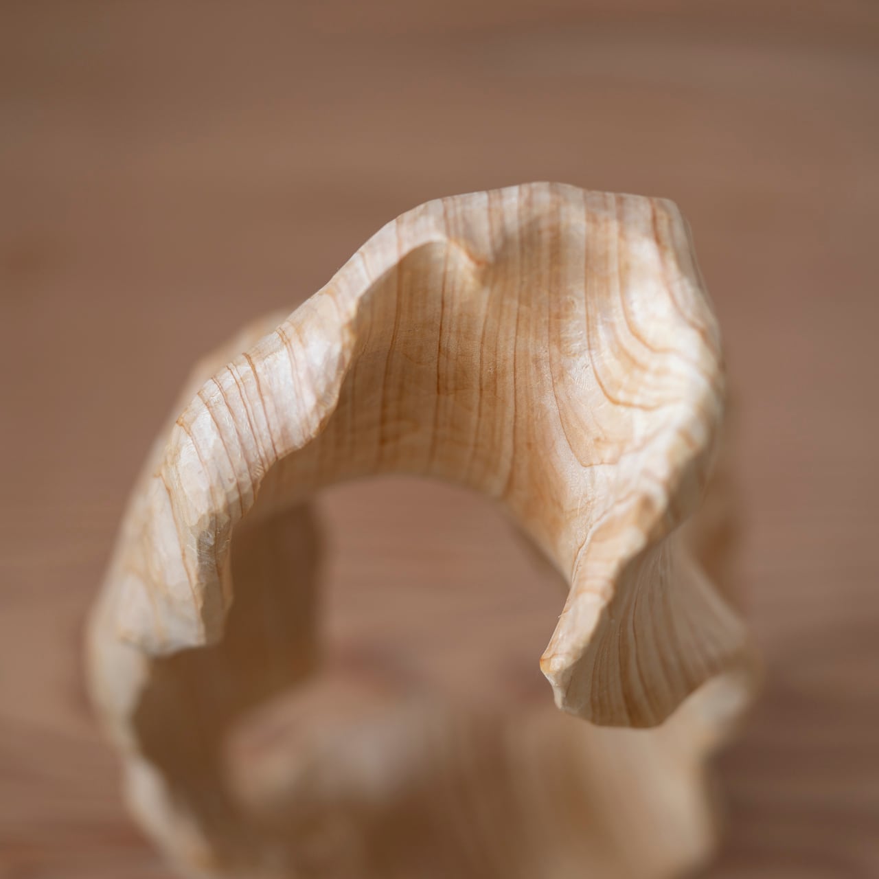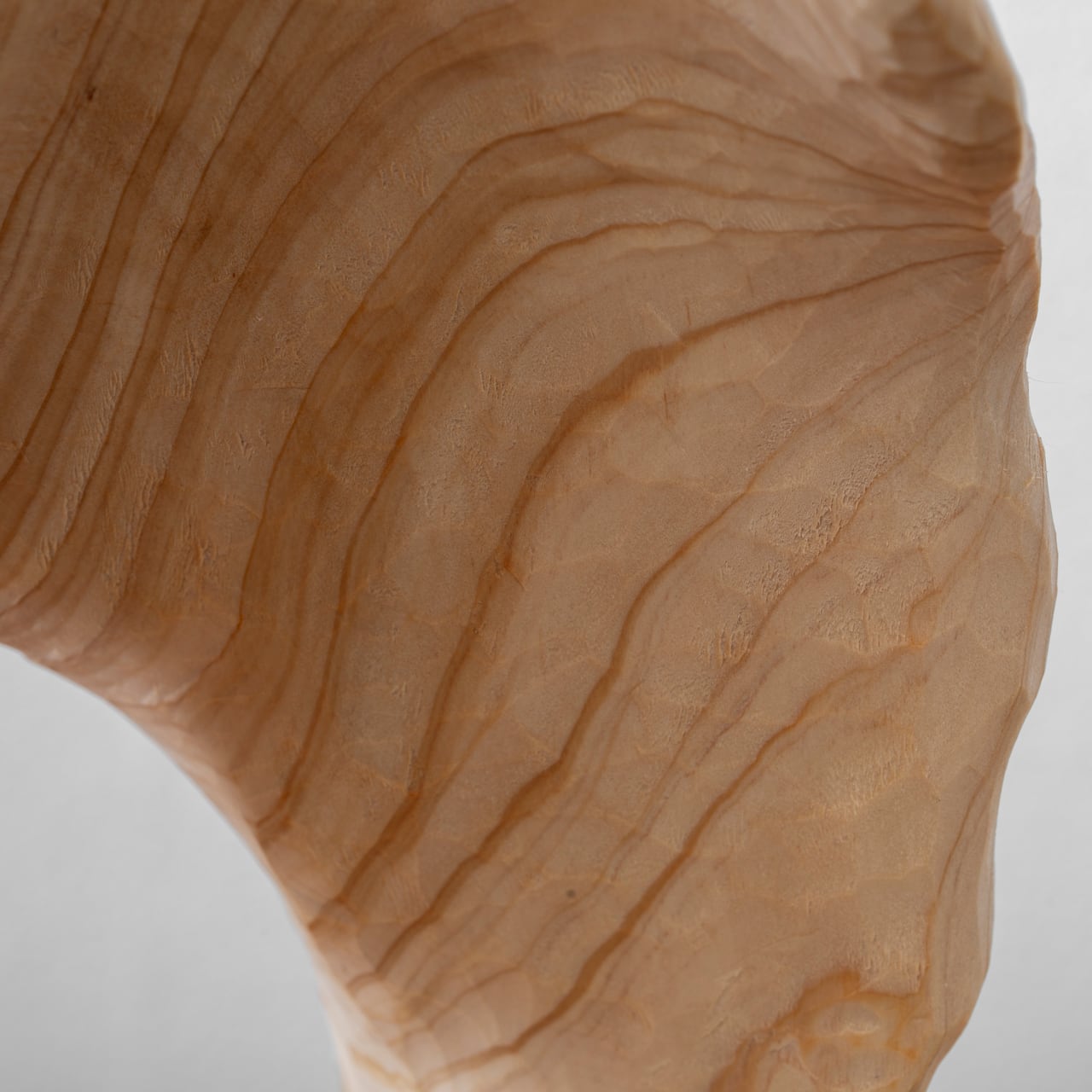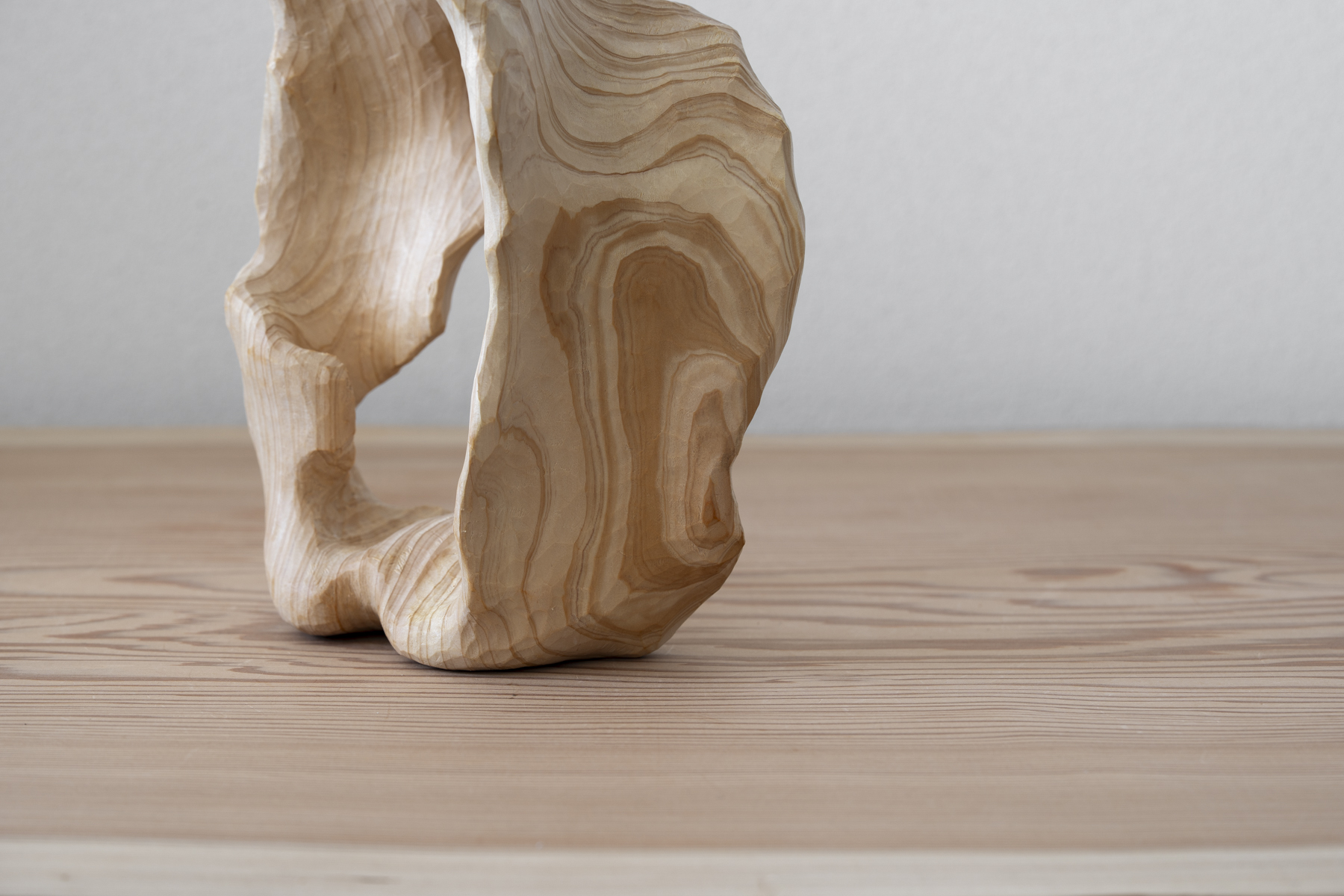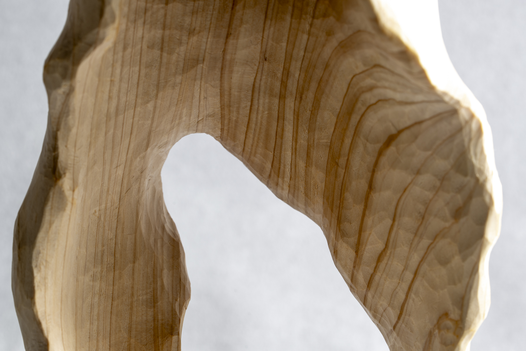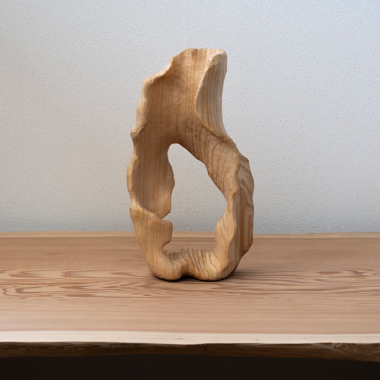 このひのきが持つ木目の際立つ濃淡がまるで曲線たちが踊るような表情を見せています。浅いうねりと深いうねりを彫ることで、それぞれがどのような踊りを見せてくれるかを楽しまずにはいられません。