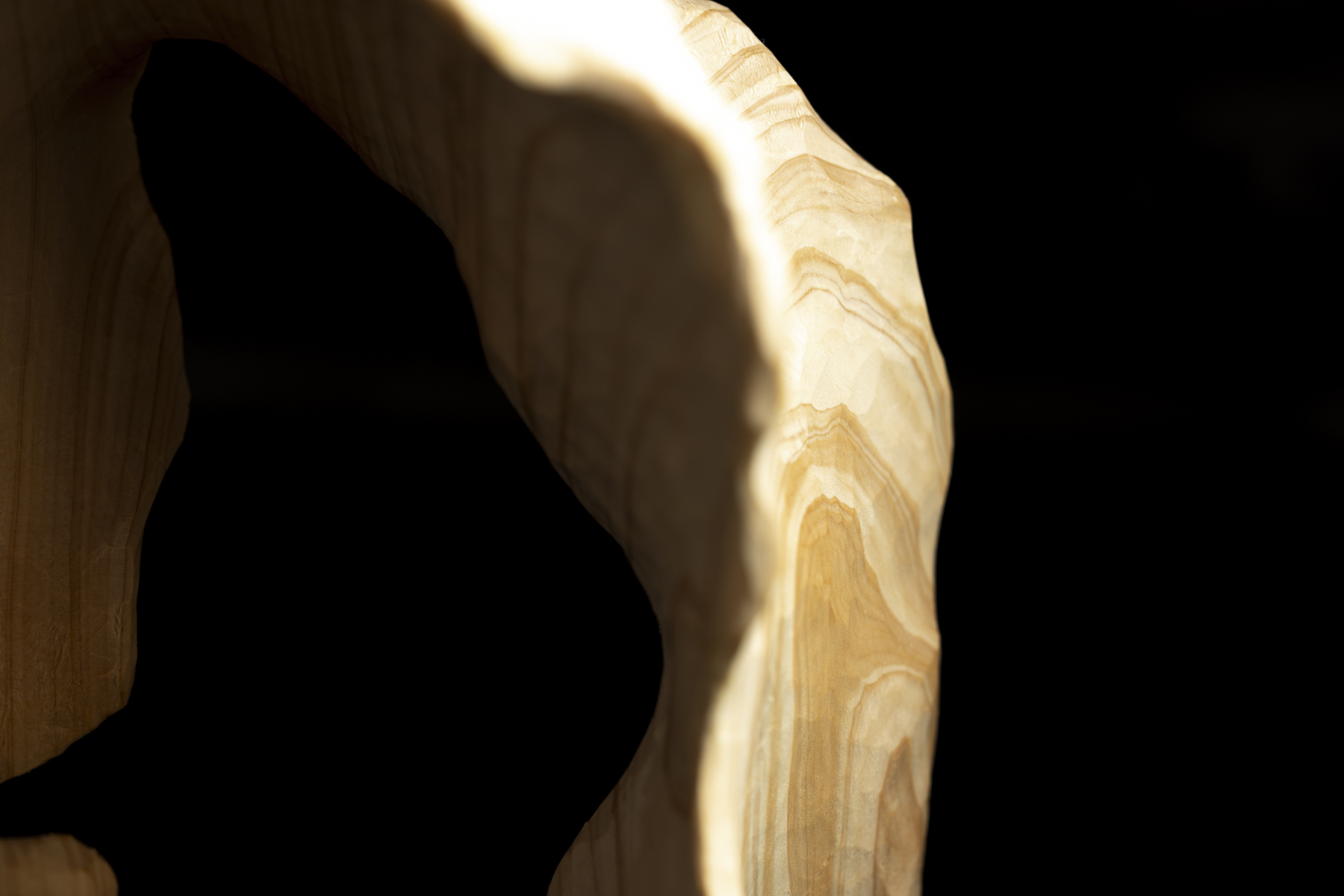 黒い背景を用いて右側からスポットライトを当てることで、縁の曲線たち、木目の曲線たちの表情がどのように変化するかを観察してみました。