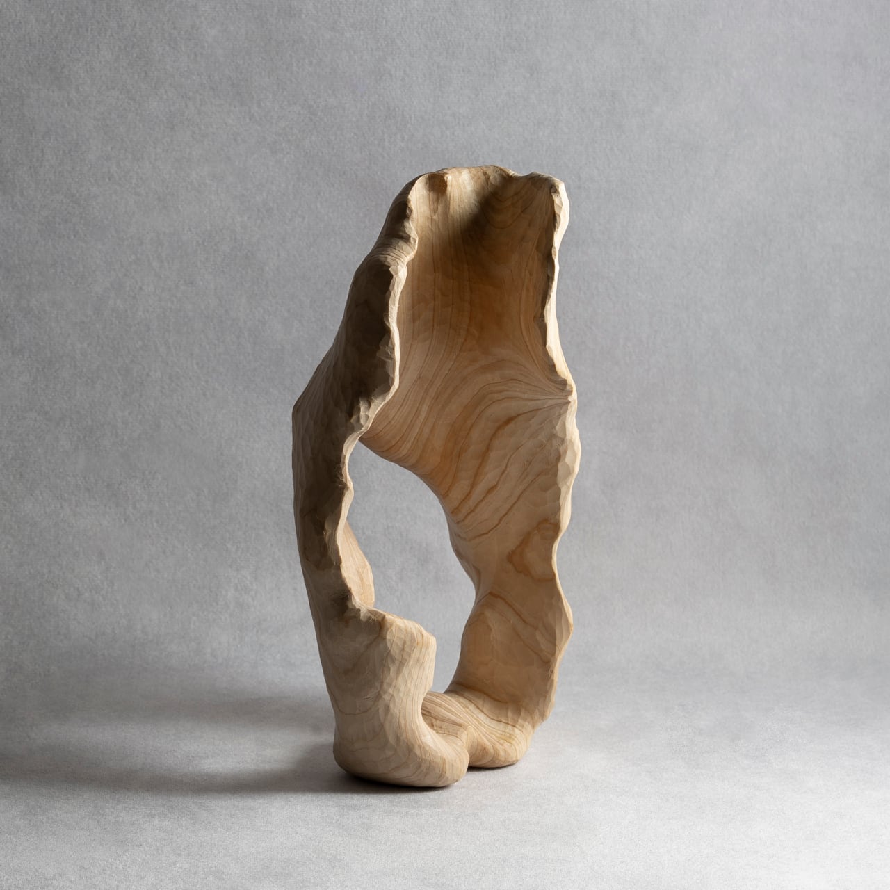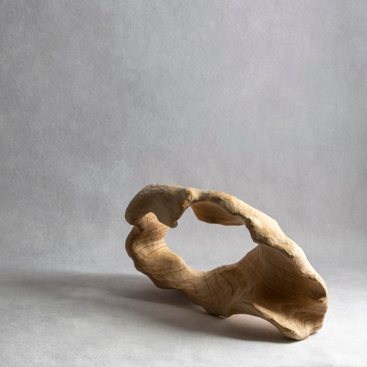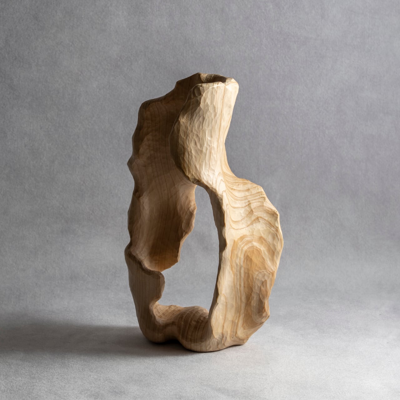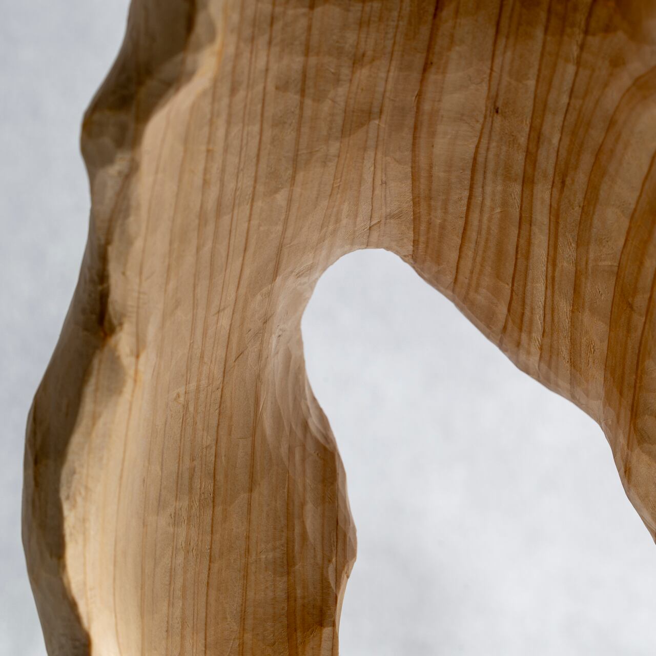 内部に大きな洞窟や窓を持ちながらも、強さと優しさを感じさせる樹木。薄く広く彫り込むことで、彫刻のうねりや木目たちの豊かな表情を表現することが可能となりました。