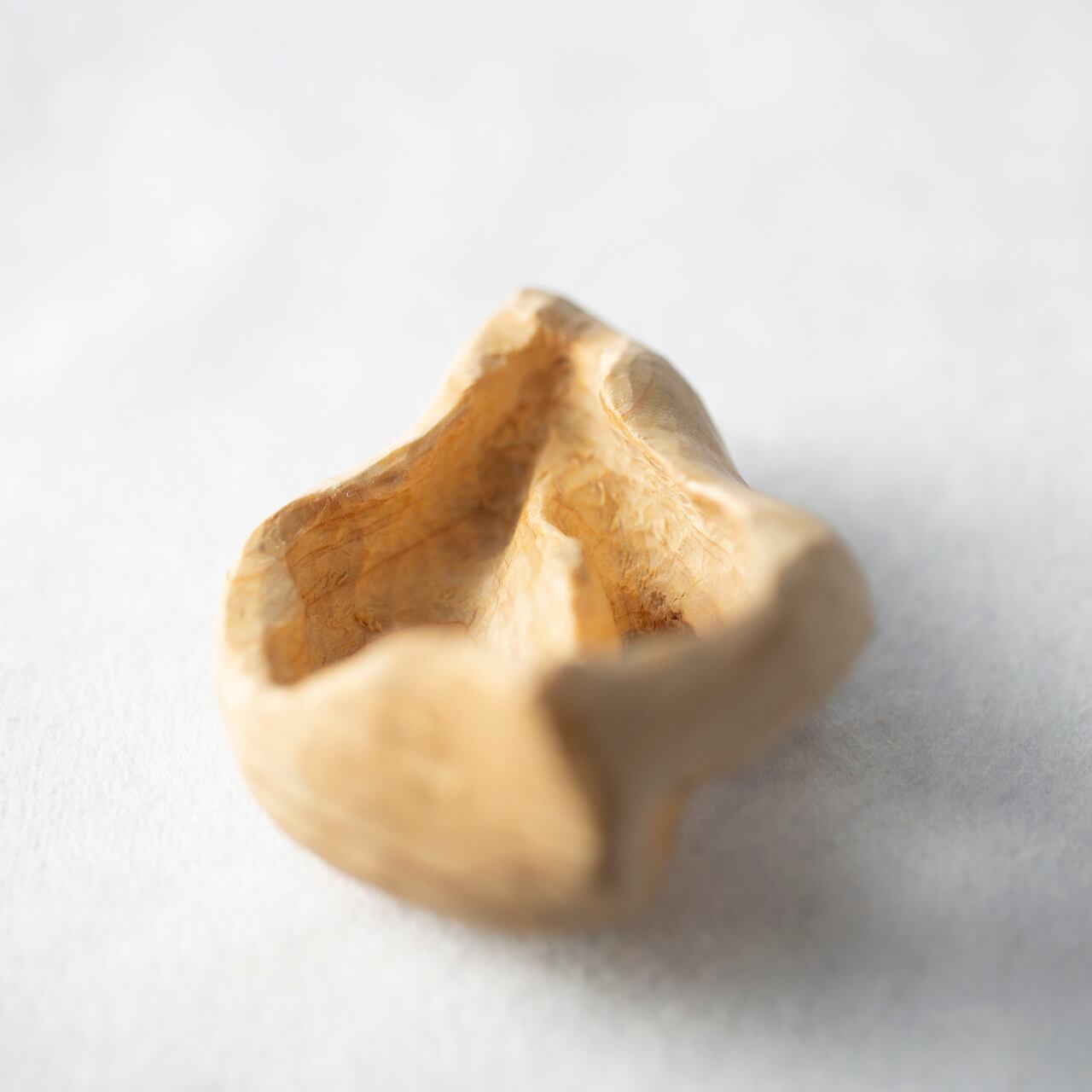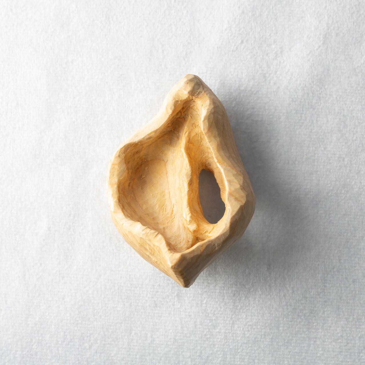 風雨にさらされた1枚の葉をイメージしました。最終的には本来の葉の形を失い自然に還ります。