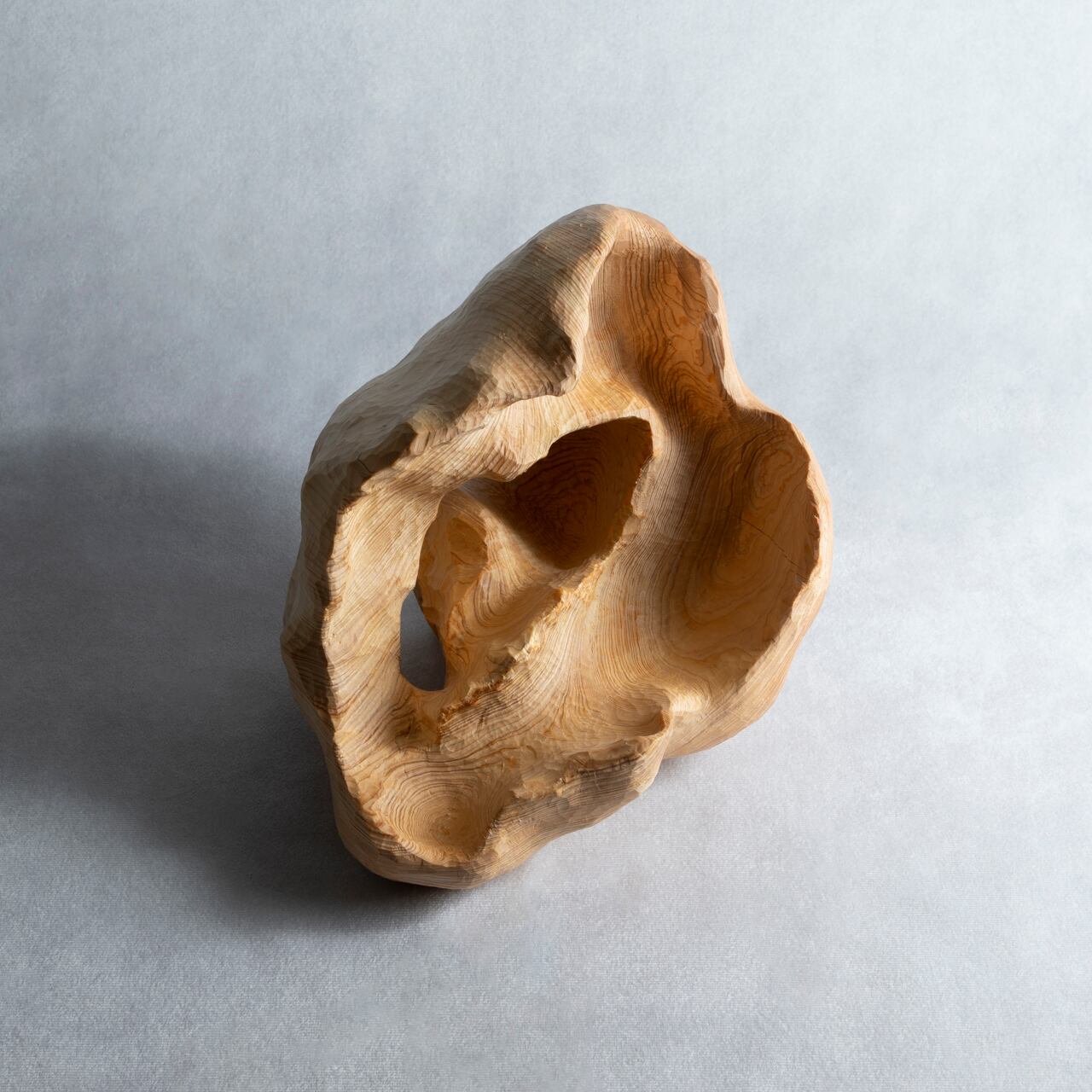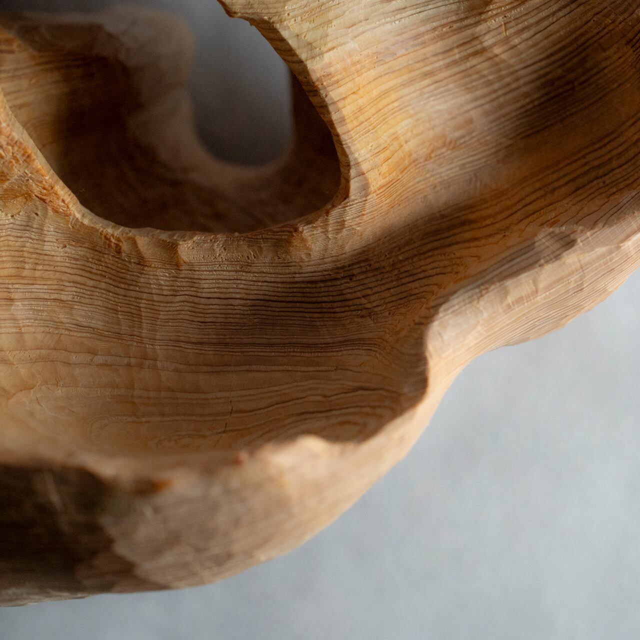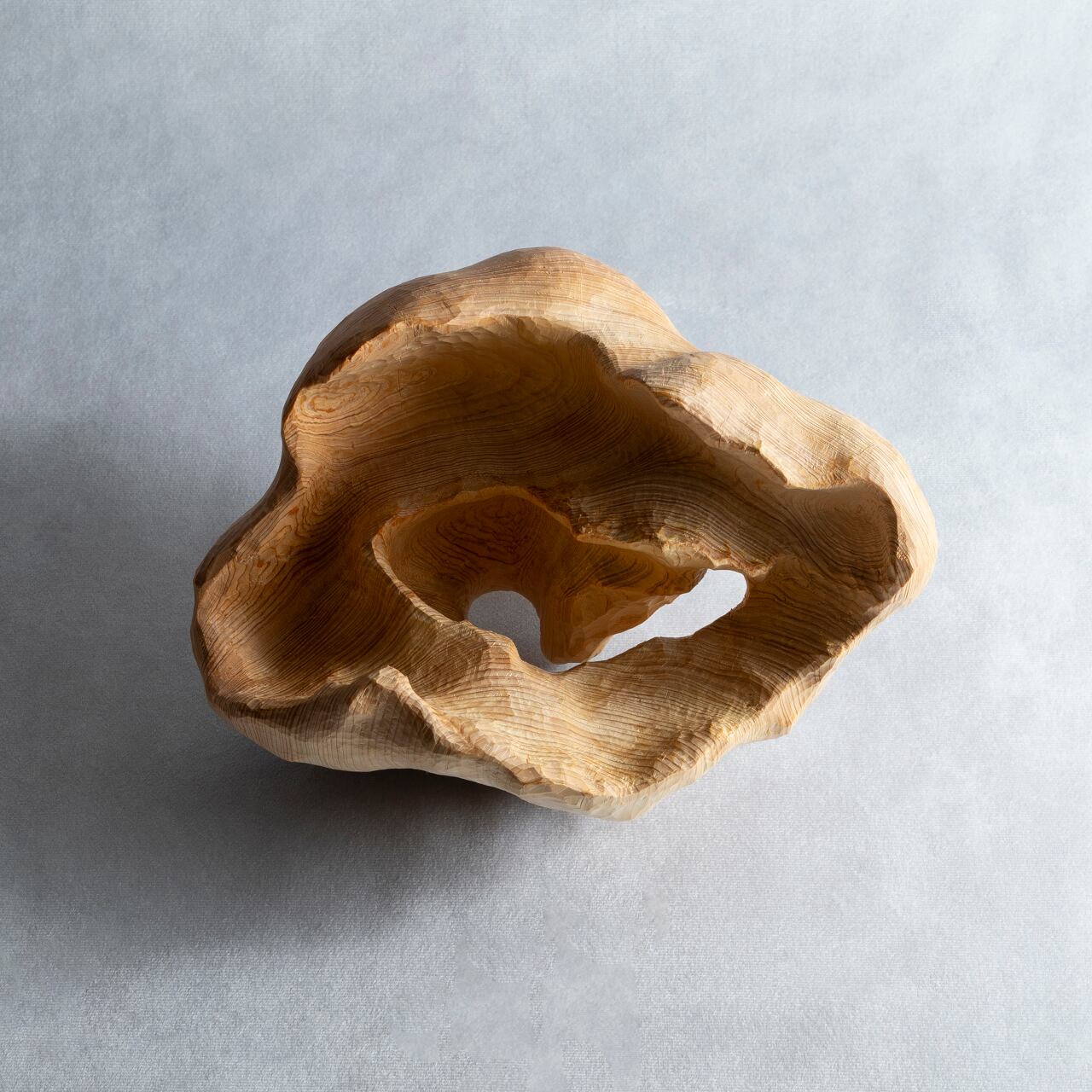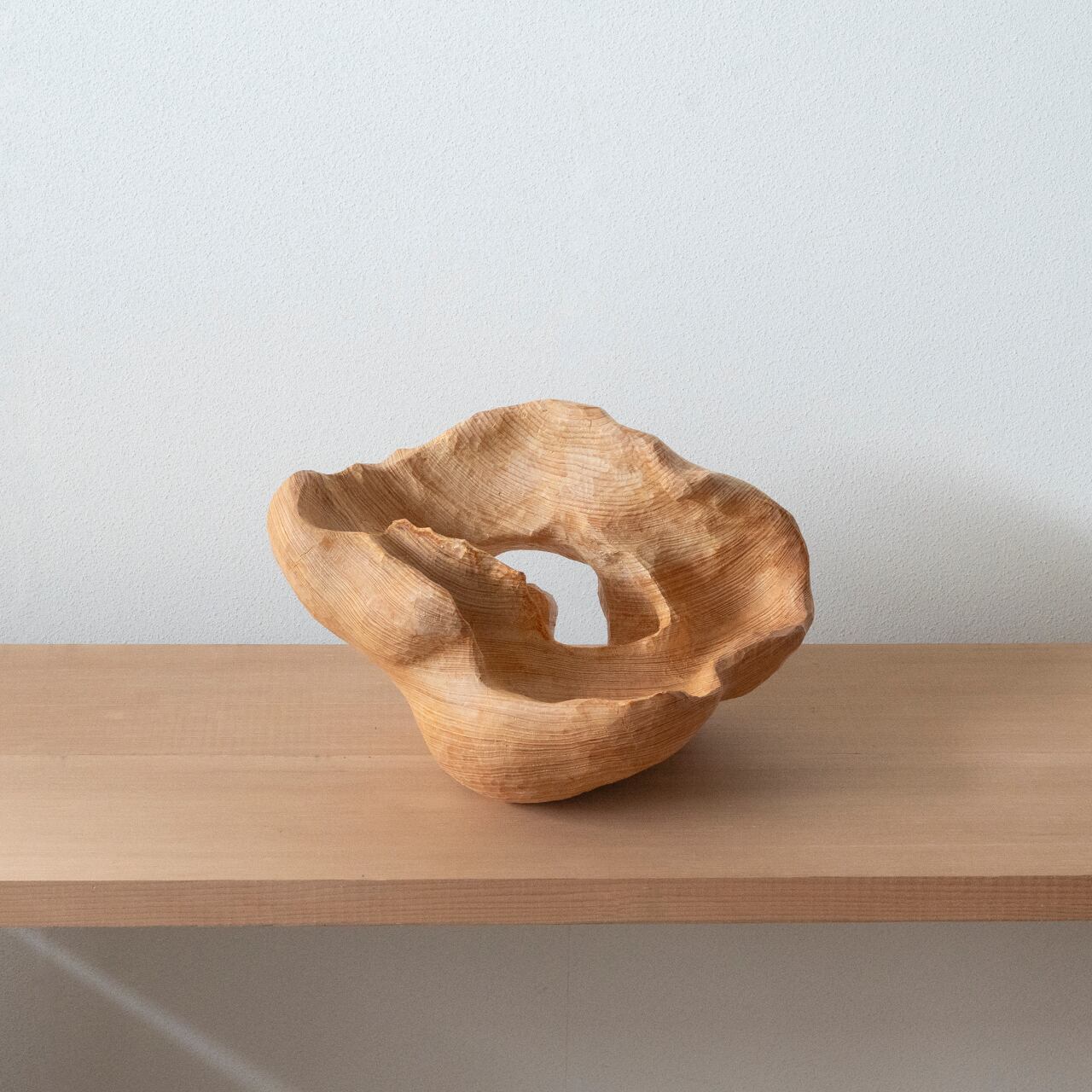 置く場所や置き方、光の向きによって、この立体的な作品の木目のかたちや動きの変化をお楽しみいただけます。