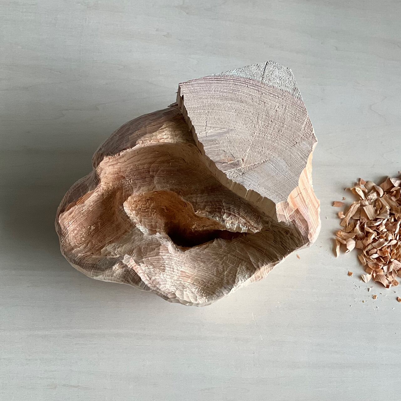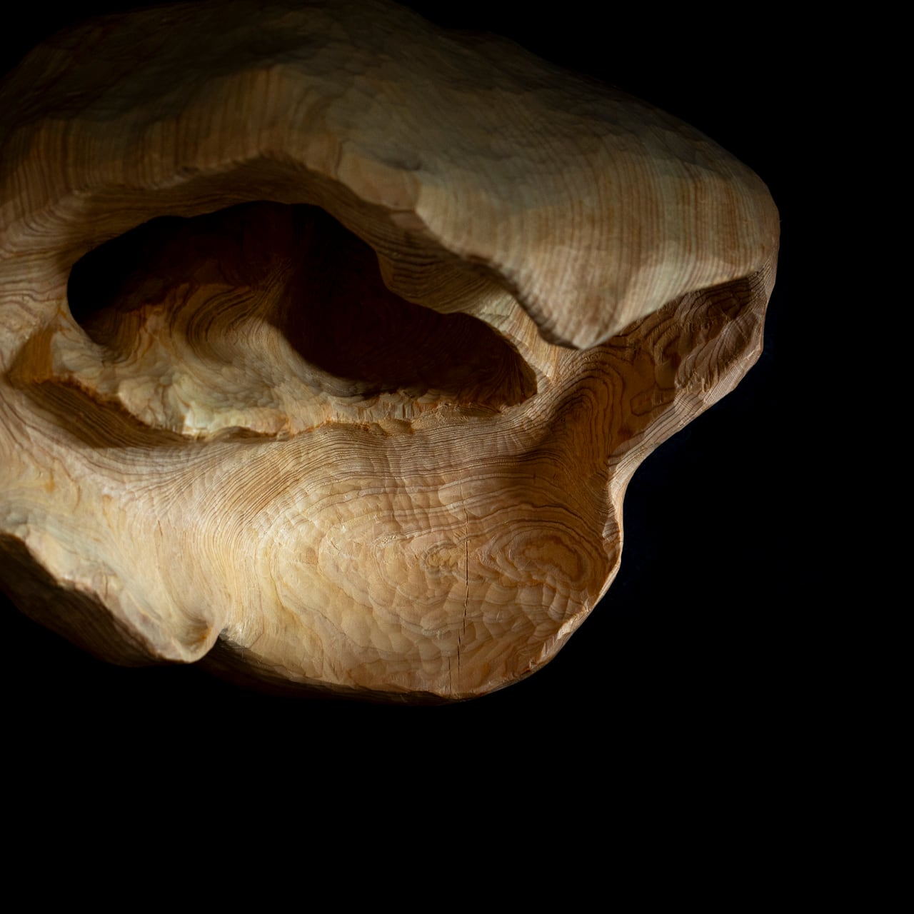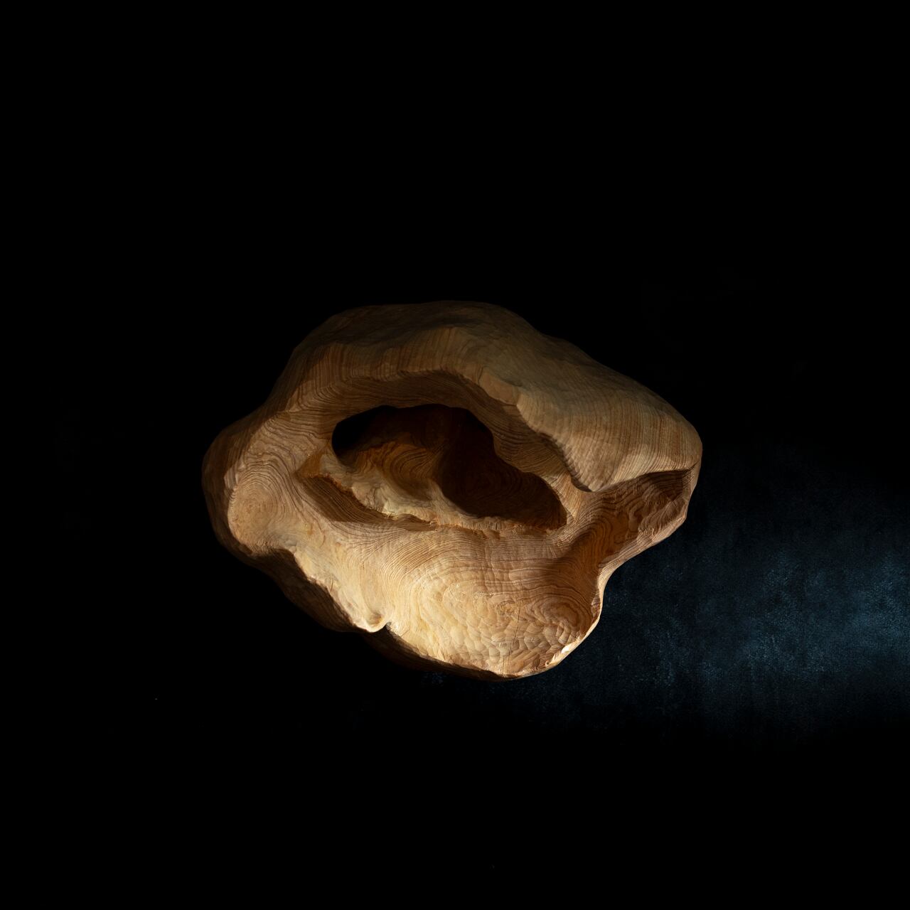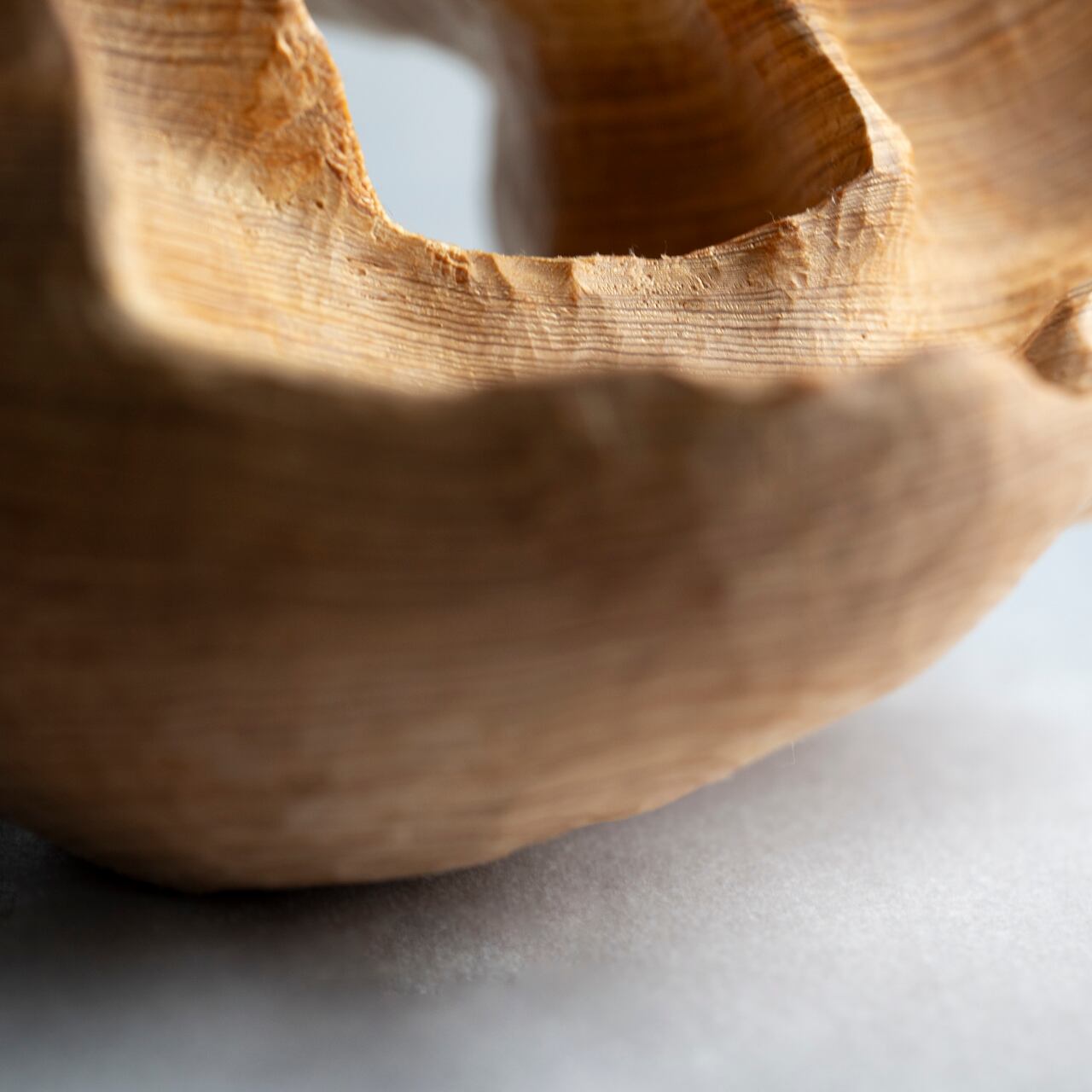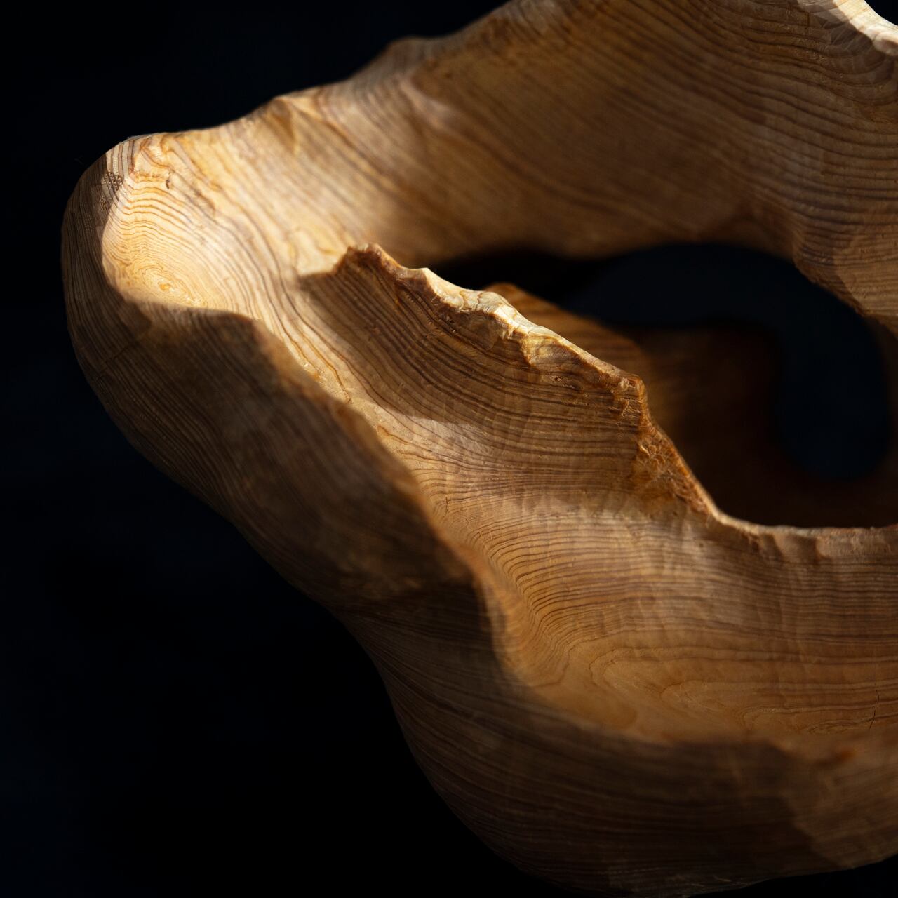 置く場所や置き方、光の向きによって、この立体的な作品の木目のかたちや動きの変化をお楽しみいただけます。