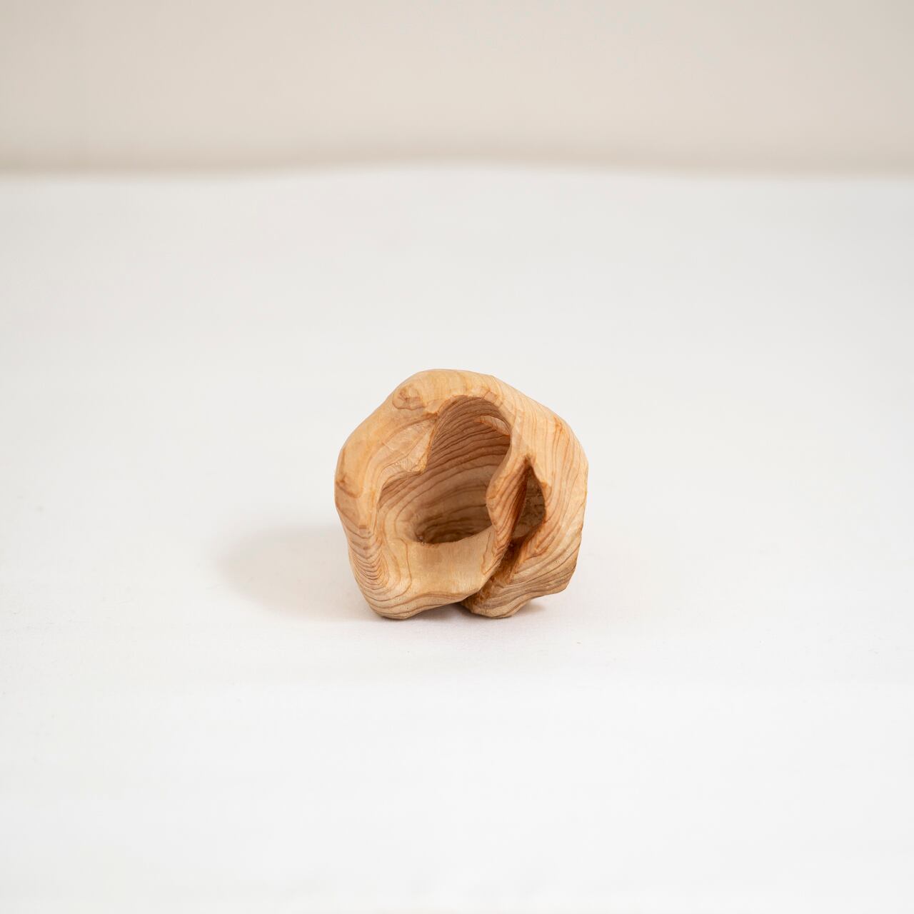 やわらかな曲線で、あたたかく包み込むようなかたち。内部にある大きな空間を楽しむことができるその小さな作品は、樹木の洞から刺激を受けて作られました。